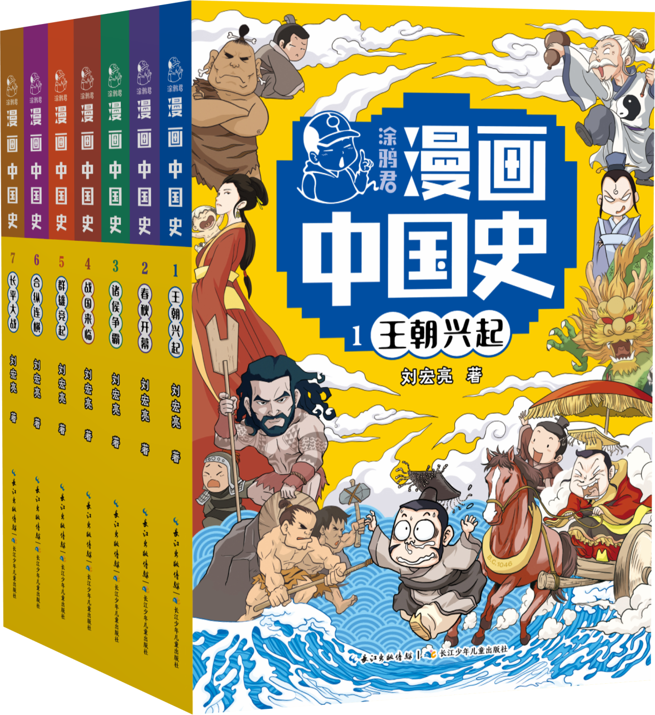 《涂鴉君漫畫中國史》第一輯共7冊,講述的是從大禹治水到秦始皇嬴政誕生約1800年的歷史故事。也就是說,這套書第一輯7冊才講完春秋戰國。書中既脈絡清晰地勾勒了王朝的興衰更替,又翔實深刻地拆解了重要事件的歷史細節,讓你不僅清楚知道歷史脈絡,更深入了解當時的社會背景和時代特點,從而真正理解中華文明的演進邏輯。