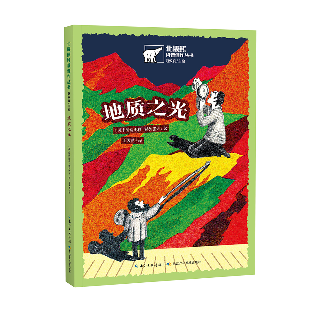 蘇聯科普作品內容豐富、體系完善,深深影響了葉永烈、高士其等老一輩科普作家。《北極熊科普佳作叢書》在20世紀70-80年代蘇聯優秀科普作品中遴選出了10本適合小學低年齡段兒童閱讀的作品,以大幅彩圖本和繪本為主,涉及航天、地質、金屬、動物、時間等多個主題,書系作者均為蘇聯各領域資深、專業的科普大家,在文學創作和科學普及方面頗有建樹。《地質之光》是《北極熊科普佳作叢書》中的一本,介紹了地質學家的工作性質、內容以及地質科學的相關知識,講述地質學家是如何在野外開展地質考察和發現有關古生物、礦物、巖石和地質礦產的信息的,帶領讀者共同探索地質現象背后的原因。