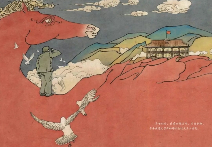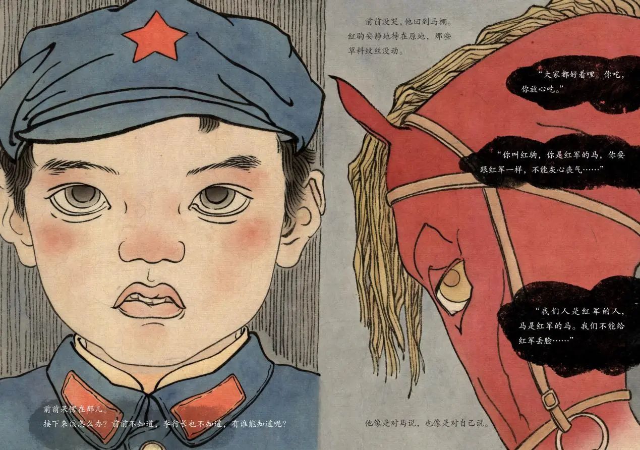 再看《紅駒》,可以給孩子講講紅軍長征的艱難歷程,讓他們了解在那個物資匱乏、環境惡劣的年代,小紅軍和紅駒是如何相互陪伴、克服重重困難的。結合長征途中經過的雪山、草地等,可以告訴孩子:“小紅軍和紅駒就像親密的戰友,一起走過了千山萬水。他們的堅持和勇氣,就像長征路上的明燈,照亮了前進的道路。”讓孩子體會到紅軍戰士的堅韌不拔、勇往直前,以及遵義會議的重大意義。