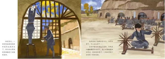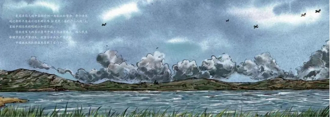 再如《板龍》用精致彩鉛繪制。翻開繪本,只見線條細膩,細節刻畫逼真,色彩絢麗,人物場景生動,孩子讀時深刻感受到軍民魚水情。