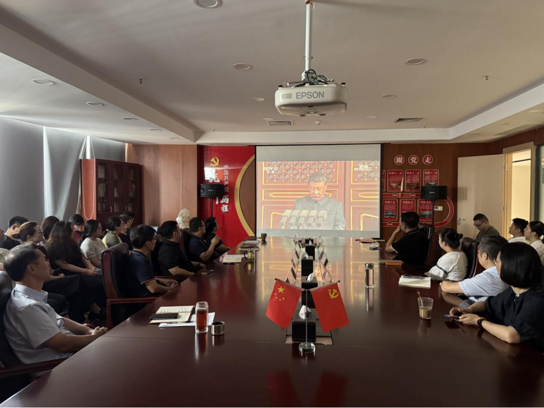 ▲ 公司領導班子成員、首席編輯、總監、支部書記及委員、工會副主席及委員、團委書記及委員、黨員代表等在13樓黨員活動室集中觀看。