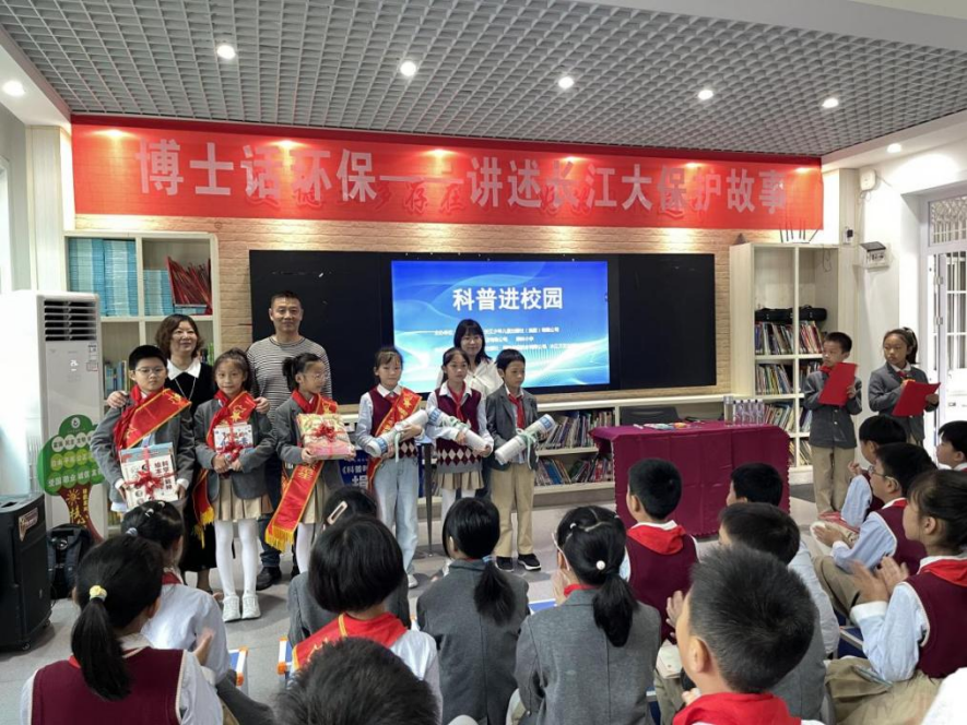 講座開始前,長江少年兒童出版社(集團)有限公司、科普時報和武昌新華書店代表向柴林小學捐贈科普圖書和《科普時報》校園專刊,讓“守護長江”的理念從書籍和文字開始傳遞。