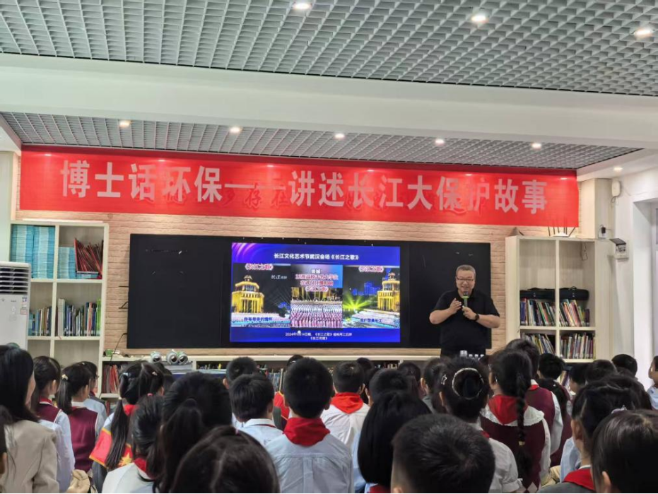 在互動環節中,“長江里有多少種魚?”“我們能為長江做些什么小事?” 等問題充滿童真,徐棟老師一一解答,同時還分享了自己參與長江生態保護的親身經歷,鼓勵孩子們做“長江的小守護者”。