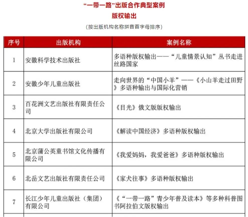 該評選由中國出版協會“一帶一路”出版工作委員會面向全國各級各類出版社(集團)、相關單位征集,經工委會秘書處初審和指導委員會終審,共有92個案例入選。