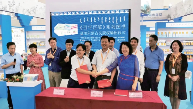 ▲“百年百部”系列圖書基里爾蒙古文版權輸出簽約儀式現場